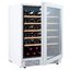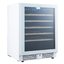 Стеклянная дверь — дополнительный изящный штрих к общему дизайну модели. Специальное покрытие защищает вино от влияния ультрафиолетовых лучей, которые проникают, если шкаф находится в солнечной комнате. Цвет корпуса — белый. Дверь можно перевесить на другую сторону, поэтому вариантов размещения его в доме становится больше.