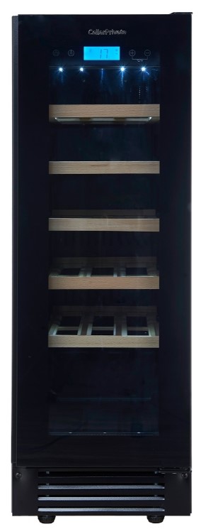 Винный холодильник CellarPrivate CP020-1TBH имеет одну температурную зону, в которой можно разместить бутылки и единовременно выставить только одну комбинацию настроек. Он встраивается в нишу, что удобно, если у вас ограничен метраж помещения. Благодаря компактным размерам данная модель — отличный выбор для офиса, гостиничного номера. Количество бутылок, которое можно разместить с учетом полной комплектации и из расчета объема бутылки 0,75 л, — 20 шт.