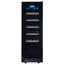 Стеклянная дверь — дополнительный изящный штрих к общему дизайну модели. Специальное покрытие защищает вино от влияния ультрафиолетовых лучей, которые проникают, если шкаф находится в солнечной комнате. Цвет корпуса — черный. Дверь можно перевесить на другую сторону, поэтому вариантов размещения его в доме становится больше.