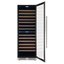 Стеклянная дверь — дополнительный изящный штрих к общему дизайну модели. Специальное покрытие защищает вино от влияния ультрафиолетовых лучей, которые проникают, если шкаф находится в солнечной комнате. Цвет корпуса — металл. Дверь можно перевесить на другую сторону, поэтому вариантов размещения его в доме становится больше.