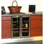 Встраиваемые холодильники для вина оснащаются специальной системой вентиляции: охлаждающая система у них находится в нижней части корпуса спереди. На такие устройства не навешивается мебельный фасад: дверца с затемненным стеклом остается на виду и открывается на достаточно широкий угол для свободного выдвижения деревянных полок.