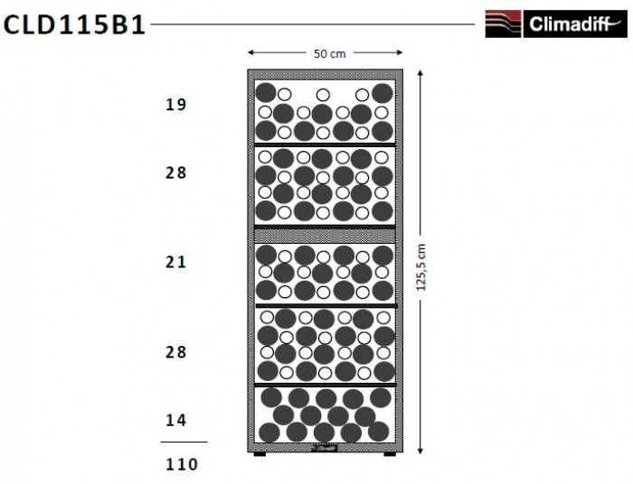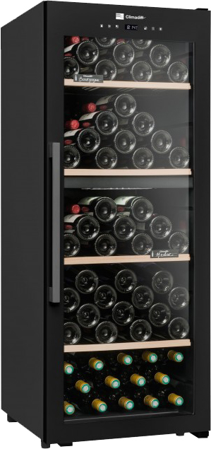 Винный холодильник Climadiff CLD115B1 имеет две температурные зоны, в которых одновременно можно хранить разные сорта алкоголя и выставлять разные сочетания настроек. Он устанавливается отдельно, что удобно, если у вас есть специальное помещение — кладовая, погреб и т.д. Количество бутылок, которое можно разместить с учетом полной комплектации и из расчета объема бутылки 0,75 л, — 56 шт.
