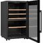Стеклянная дверь — дополнительный изящный штрих к общему дизайну модели. Специальное покрытие защищает вино от влияния ультрафиолетовых лучей, которые проникают, если шкаф находится в солнечной комнате. Цвет корпуса — черный.