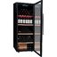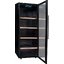 Стеклянная дверь — дополнительный изящный штрих к общему дизайну модели. Специальное покрытие защищает вино от влияния ультрафиолетовых лучей, которые проникают, если шкаф находится в солнечной комнате. Цвет корпуса — черный.