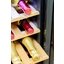Полки в винных шкафах позволяют размещать бутылки для хранения в горизонтальном положении. Это необходимо, чтобы пробка постоянно смачивалась жидкостью и не пересыхала. Плотно закрытая пробка гарантирует, что внутрь бутылки не проникнет наружный воздух. Кислород, содержащийся в воздухе, может стать причиной ухудшения вкуса вина и даже его скисания. Кроме того, горизонтальное положение позволяет лучше оценить количество осадка. Материал изготовления полок выбирается, исходя из требований, предъявляемых к содержанию коллекции вин. Одним из основных требования является отсутствие или максимальное сокращение вибрации и хорошая фиксация бутылок на месте хранения. Даже если полка выдвигается, бутылки должны оставаться на своем месте. Второе требование исключает применение стеклянных полок, как в обычном холодильнике: на них почти невозможно зафиксировать бутылки.