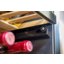 Встраиваемые холодильники для вина оснащаются специальной системой вентиляции: охлаждающая система у них находится в нижней части корпуса спереди. На такие устройства не навешивается мебельный фасад: дверца с затемненным стеклом остается на виду и открывается на достаточно широкий угол для свободного выдвижения деревянных полок.