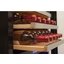 Полки в винных шкафах позволяют размещать бутылки для хранения в горизонтальном положении. Это необходимо, чтобы пробка постоянно смачивалась жидкостью и не пересыхала. Плотно закрытая пробка гарантирует, что внутрь бутылки не проникнет наружный воздух. Кислород, содержащийся в воздухе, может стать причиной ухудшения вкуса вина и даже его скисания. Кроме того, горизонтальное положение позволяет лучше оценить количество осадка. Материал изготовления полок выбирается, исходя из требований, предъявляемых к содержанию коллекции вин. Одним из основных требования является отсутствие или максимальное сокращение вибрации и хорошая фиксация бутылок на месте хранения. Даже если полка выдвигается, бутылки должны оставаться на своем месте. Второе требование исключает применение стеклянных полок, как в обычном холодильнике: на них почти невозможно зафиксировать бутылки.