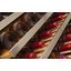 Самым подходящим материалом для изготовления полок, по мнению специалистов, является натуральное не лакированное дерево — бук, дуб, сосна, лиственница. У него множество преимуществ: прежде всего оно способно гасить мелкие вибрации. Дерево хорошо поддается обработке: решетчатые полки, например, позволяют хорошо зафиксировать бутылки, так что они не будут качаться при выдвижении. Кроме того, дерево почти не впитывает запахи и при понижении температуры на нем не образуется конденсат. В некоторых моделях применяются комбинированные полки с металлическим каркасом и деревянными держателями бутылок, а также полностью металлические. Недостаток их — образование конденсата, а значит, изменение уровня влажности, которое может привести также к порче этикеток. Самый бюджетный и наименее эффектный вариант — полки из пластика, имеющие те же недостатки, что и металлические.