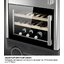 Встраиваемые холодильники для вина оснащаются специальной системой вентиляции: охлаждающая система у них находится в нижней части корпуса спереди. На такие устройства не навешивается мебельный фасад: дверца с затемненным стеклом остается на виду и открывается на достаточно широкий угол для свободного выдвижения деревянных полок.