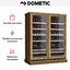 Винный холодильник Dometic C101G Double Wooden Zebrano имеет две температурные зоны, в которых одновременно можно хранить разные сорта алкоголя и выставлять разные сочетания настроек. Он устанавливается отдельно, что удобно, если у вас есть специальное помещение — кладовая, погреб и т.д. Количество бутылок, которое можно разместить с учетом полной комплектации и из расчета объема бутылки 0,75 л, — 202 шт.