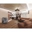 Встраиваемые холодильники для вина оснащаются специальной системой вентиляции: охлаждающая система у них находится в нижней части корпуса спереди. На такие устройства не навешивается мебельный фасад: дверца с затемненным стеклом остается на виду и открывается на достаточно широкий угол для свободного выдвижения деревянных полок.