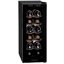 Прибор рассчитан всего на 12 бутылок по 0.75 л, расположенных в горизонтальном положении. Такой небольшой объем в 33л подходит для подготовки вин к дегустации. Одна температурная зона позволяет хранить напитки в диапазоне от +12 до +18 градусов. Четыре полки выполнены из металла. Фасад сделан из стекла, который покрыт УФ защитой, поэтому содержимое надежно защищено от проникновения солнечных лучей. Рамка на дверце идет в тон корпуса.