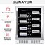 Dunavox DAU-40.138SS — встраиваемый винный шкаф, вмещающий 40 бутылок. Тонированное стекло с защитой от УФ лучей обрамлено рамкой стального цвета, дверь перенавешивается. Шкаф работает на базе малошумного компрессора, уровень шума составляет 41 дБ.