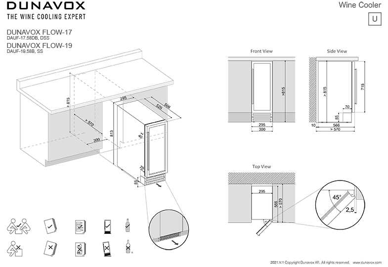 Частичное встраивание отдельно стоящих винных шкафов в нишу — полезная опция, позволяющая сэкономить место в помещении и выбрать лучшее расположение прибора. Устанавливать в нишу или под столешницу рекомендуется только компрессорные модели — другие, например, термоэлектрические, не смогут достаточно вентилироваться при таком расположении. Если винный холодильник оснащен воздухозаборными решетками и радиатором охлаждения в нижней части, он может быть встроен без зазоров. Для удаления нагретого воздуха требуется свободный проход по всей длине холодильника от цоколя до верхней части.