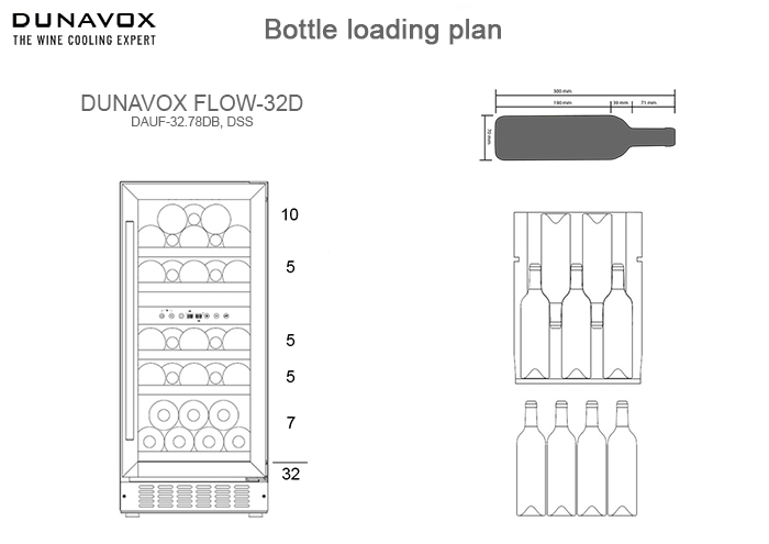 Винный холодильник Dunavox DAUF-32.78DC имеет две температурные зоны, в которых одновременно можно хранить разные сорта алкоголя и выставлять разные сочетания настроек. Он встраивается в нишу, что удобно, если у вас ограничен метраж помещения. Благодаря компактным размерам данная модель — отличный выбор для офиса, гостиничного номера. Количество бутылок, которое можно разместить с учетом полной комплектации и из расчета объема бутылки 0,75 л, — 32 шт.