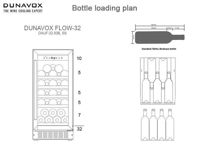 Винный холодильник Dunavox DAUF-32.83C имеет две температурные зоны, в которых одновременно можно хранить разные сорта алкоголя и выставлять разные сочетания настроек. Он встраивается в нишу, что удобно, если у вас ограничен метраж помещения. Благодаря компактным размерам данная модель — отличный выбор для офиса, гостиничного номера. Количество бутылок, которое можно разместить с учетом полной комплектации и из расчета объема бутылки 0,75 л, — 32 шт.