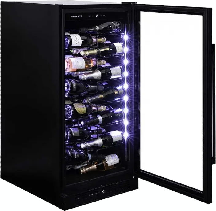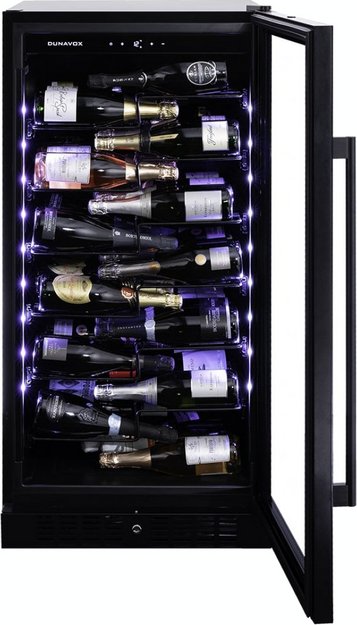 Винный холодильник Dunavox DX-70.258MB имеет одну температурную зону, в которой можно разместить бутылки и единовременно выставить только одну комбинацию настроек. Он устанавливается отдельно, что удобно, если у вас есть специальное помещение — кладовая, погреб и т.д. Количество бутылок, которое можно разместить с учетом полной комплектации и из расчета объема бутылки 0,75 л, — 70 шт.