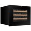 Электронное управление помогает быстро разобраться в том, как функционирует эта модель, и легко настроить все необходимые параметры. На дисплее отображаются данные, которые собирают датчики в камере. Лампочки, расположенные внутри, хорошо подсвечивают бутылки. Всего полок, на которых можно разместить коллекцию, в шкафу 3 шт.