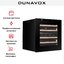 Винный холодильник Dunavox DXB-26.69DB.TO имеет две температурные зоны, в которых одновременно можно хранить разные сорта алкоголя и выставлять разные сочетания настроек. Он встраивается в нишу, что удобно, если у вас ограничен метраж помещения. Благодаря компактным размерам данная модель — отличный выбор для офиса, гостиничного номера. Количество бутылок, которое можно разместить с учетом полной комплектации и из расчета объема бутылки 0,75 л, — 26 шт.
