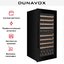Винный холодильник Dunavox DXJ-65.154DB имеет две температурные зоны, в которых одновременно можно хранить разные сорта алкоголя и выставлять разные сочетания настроек. Он встраивается в нишу, что удобно, если у вас ограничен метраж помещения. Количество бутылок, которое можно разместить с учетом полной комплектации и из расчета объема бутылки 0,75 л, — 65 шт.
