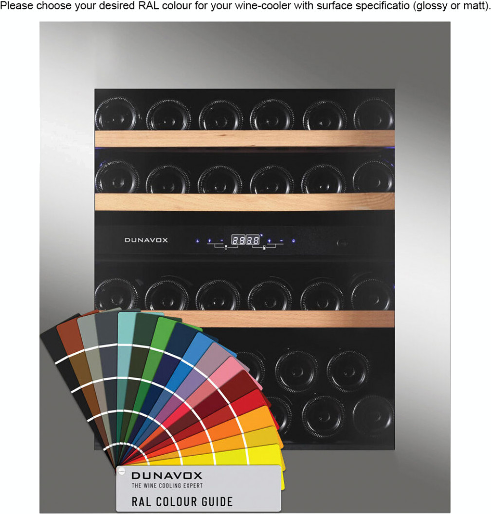 Всегда популярными остаются и универсальные цвета, особенно черный: белые корпуса винных шкафов можно найти в каталогах значительно реже. Черные корпуса могут изготавливаться как из металла, так и из дерева. Достаточно велик ассортимент винных холодильников в корпусах серого цвета и оттенка нержавеющей стали, которые сочетаются с любыми другими тонами и уместны а интерьерах как классического, так и современного стиля. Интересны изделия в корпусах «металлических» оттенков: серебряного, золотого, бронзового. Эффектно смотрятся модели, где детали золотого и бронзового цветов сочетаются с теплыми тонами натурального дерева.