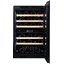 Стеклянная дверь — дополнительный изящный штрих к общему дизайну модели. Специальное покрытие защищает вино от влияния ультрафиолетовых лучей, которые проникают, если шкаф находится в солнечной комнате. Хранение становится еще безопаснее и герметичнее благодаря нескольким слоям стекол. Цвет корпуса — черный матовый. Дверь можно перевесить на другую сторону, поэтому вариантов размещения его в доме становится больше.
