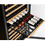Современные винные шкафы всех типов, в том числе компрессорные, темоэлектрические и абсорбционные, оснащаются электронной системой управления — кнопочной или сенсорной. Панель управления, с помощью которой производится регулировка параметров работы, может размещаться внутри винного шкафа за дверцей или снаружи в верхней части корпуса. Второй вариант более удобен, поскольку для изменения параметров не нужно открывать дверцу. Кроме того, такое расположение панели управления позволяет поддерживать более стабильную температуру в камере. Однако для больших винных шкафов в классическом стиле из ценных пород дерева предпочтительнее скрытая панель управления, которая не портит их внешний вид.