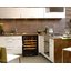 Встраиваемые холодильники для вина оснащаются специальной системой вентиляции: охлаждающая система у них находится в нижней части корпуса спереди. На такие устройства не навешивается мебельный фасад: дверца с затемненным стеклом остается на виду и открывается на достаточно широкий угол для свободного выдвижения деревянных полок.