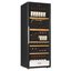 Производители предлагают винные шкафы, оснащенные одной, двумя, тремя и четырьмя камерами, которые могут располагаться как друг под другом, так бок и бок. Самые популярные — однокамерные модели, ассортимент которых особенно широк, но втором месте — двухкамерные. Над заметить, что количество камер не зависит напрямую от габаритов изделия: например, однокамерные модели увеличенных габаритов — далеко не редкость. Их высота может варьироваться в пределах от 14 см до 219 см, а ширина — от 13 см до 150 см.