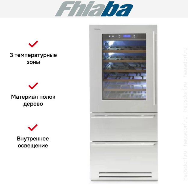 Fhiaba KS8990HWT3 — отдельностоящий винный шкаф шириной 88.7 см. Помимо основной камеры модель предусматривает наличие двух выдвижных ящиков TriMode, способных работать в режимах морозильника, холодильника и зоны CrisperFresco. Электронная панель управления и встроенная подсветка гарантируют удобную эксплуатацию прибора.