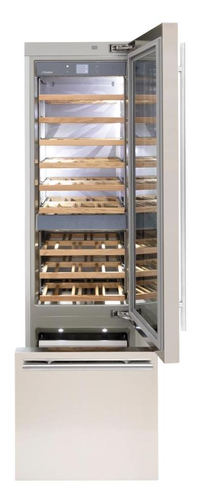 Винный холодильник Fhiaba KS601TWT6 имеет несколько температурных зон, в которых одновременно можно хранить разные сорта алкоголя и выставлять разные сочетания настроек. Он встраивается в нишу, что удобно, если у вас ограничен метраж помещения. Количество бутылок, которое можно разместить с учетом полной комплектации и из расчета объема бутылки 0,75 л, — 54 шт.