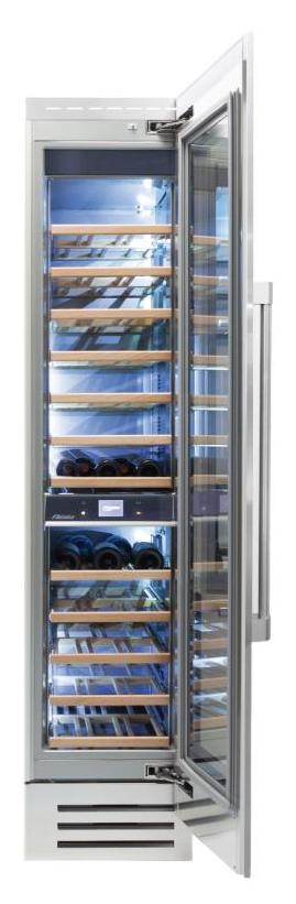Винный холодильник Fhiaba RS450FW6 имеет две температурные зоны, в которых одновременно можно хранить разные сорта алкоголя и выставлять разные сочетания настроек. Он встраивается в нишу, что удобно, если у вас ограничен метраж помещения. Количество бутылок, которое можно разместить с учетом полной комплектации и из расчета объема бутылки 0,75 л, — 52 шт.