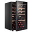 Стеклянная дверь — дополнительный изящный штрих к общему дизайну модели. Специальное покрытие защищает вино от влияния ультрафиолетовых лучей, которые проникают, если шкаф находится в солнечной комнате. Цвет корпуса — черный. Дверь можно перевесить на другую сторону, поэтому вариантов размещения его в доме становится больше.
