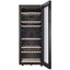 Стеклянная дверь — дополнительный изящный штрих к общему дизайну модели. Специальное покрытие защищает вино от влияния ультрафиолетовых лучей, которые проникают, если шкаф находится в солнечной комнате. Цвет корпуса — черный. Дверь можно перевесить на другую сторону, поэтому вариантов размещения его в доме становится больше.