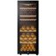 Электронное управление помогает быстро разобраться в том, как функционирует эта модель, и легко настроить все необходимые параметры. На дисплее отображаются данные, которые собирают датчики в камере. Лампочки, расположенные внутри, хорошо подсвечивают бутылки. Всего полок, на которых можно разместить коллекцию, в шкафу 8 шт. Пространство тщательно вентилируется, чтобы воздух не застаивался, не попадали посторонние запахи.