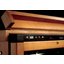 Современные винные шкафы всех типов, в том числе компрессорные, темоэлектрические и абсорбционные, оснащаются электронной системой управления — кнопочной или сенсорной. Панель управления, с помощью которой производится регулировка параметров работы, может размещаться внутри винного шкафа за дверцей или снаружи в верхней части корпуса. Второй вариант более удобен, поскольку для изменения параметров не нужно открывать дверцу. Кроме того, такое расположение панели управления позволяет поддерживать более стабильную температуру в камере. Однако для больших винных шкафов в классическом стиле из ценных пород дерева предпочтительнее скрытая панель управления, которая не портит их внешний вид.