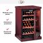 Производители предлагают винные шкафы, оснащенные одной, двумя, тремя и четырьмя камерами, которые могут располагаться как друг под другом, так бок и бок. Самые популярные — однокамерные модели, ассортимент которых особенно широк, но втором месте — двухкамерные. Над заметить, что количество камер не зависит напрямую от габаритов изделия: например, однокамерные модели увеличенных габаритов — далеко не редкость. Их высота может варьироваться в пределах от 14 см до 219 см, а ширина — от 13 см до 150 см.