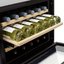 Стеклянная дверь — дополнительный изящный штрих к общему дизайну модели. Специальное покрытие защищает вино от влияния ультрафиолетовых лучей, которые проникают, если шкаф находится в солнечной комнате. Цвет корпуса — черный.