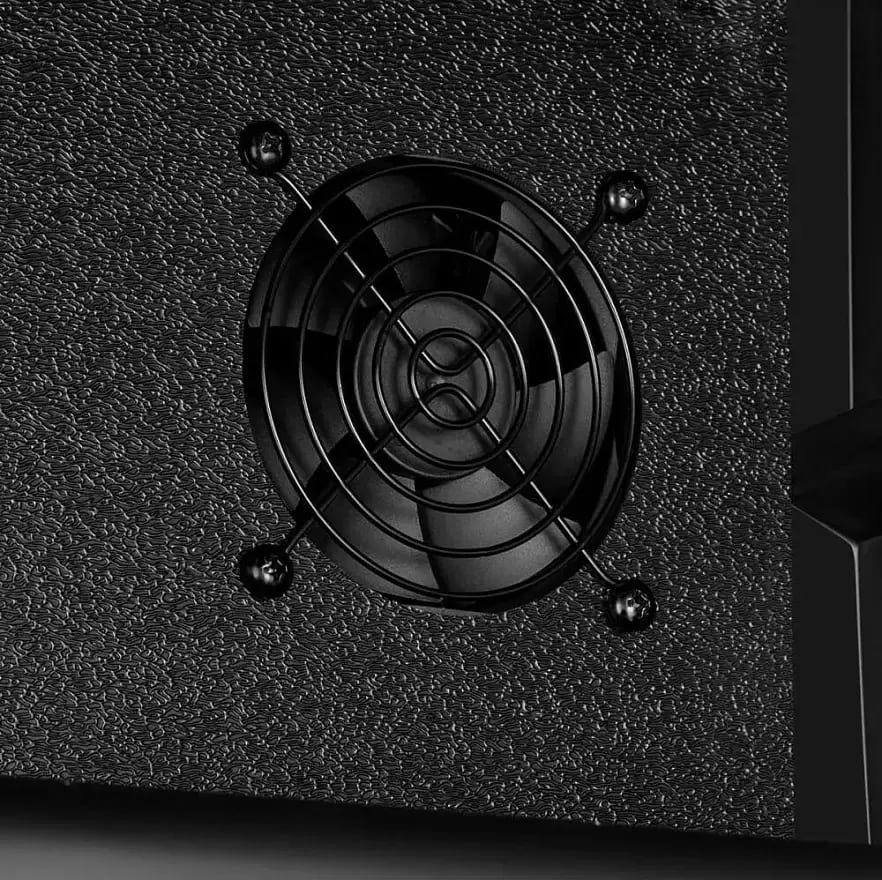 Стеклянная дверь — дополнительный изящный штрих к общему дизайну модели. Цвет корпуса — черный.