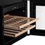 Электронное управление помогает быстро разобраться в том, как функционирует эта модель, и легко настроить все необходимые параметры. На дисплее отображаются данные, которые собирают датчики в камере. Лампочки, расположенные внутри, хорошо подсвечивают бутылки. Всего полок, на которых можно разместить коллекцию, в шкафу 2 шт.