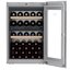 Дверца у большинства винных шкафов изготавливается из многослойного тонированного стекла. Такой материал, с одной стороны, позволяет оценивать коллекцию вин визуально, не открывая дверцу, в условиях стабильной температуры и влажности. С другой стороны, затемненное стекло с УФ-фильтром в виде напыления или специальной пленки надежно изолирует винные бутылки негативного воздействия ультрафиолетового излучения. Несколько слоев стекла обеспечивают при этом дополнительную защиту. Очень часто стекло в дверце заключается в рамку из дерева или металла. Натуральный или окрашенный металл или дерево не только способствуют прочности конструкции, но и превращают винный холодильник, особенно отдельно стоящий, в эффектный элемент обстановки.