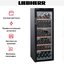 Производители предлагают винные шкафы, оснащенные одной, двумя, тремя и четырьмя камерами, которые могут располагаться как друг под другом, так бок и бок. Самые популярные — однокамерные модели, ассортимент которых особенно широк, но втором месте — двухкамерные. Над заметить, что количество камер не зависит напрямую от габаритов изделия: например, однокамерные модели увеличенных габаритов — далеко не редкость. Их высота может варьироваться в пределах от 14 см до 219 см, а ширина — от 13 см до 150 см.