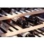 Самым подходящим материалом для изготовления полок, по мнению специалистов, является натуральное не лакированное дерево — бук, дуб, сосна, лиственница. У него множество преимуществ: прежде всего оно способно гасить мелкие вибрации. Дерево хорошо поддается обработке: решетчатые полки, например, позволяют хорошо зафиксировать бутылки, так что они не будут качаться при выдвижении. Кроме того, дерево почти не впитывает запахи и при понижении температуры на нем не образуется конденсат. В некоторых моделях применяются комбинированные полки с металлическим каркасом и деревянными держателями бутылок, а также полностью металлические. Недостаток их — образование конденсата, а значит, изменение уровня влажности, которое может привести также к порче этикеток. Самый бюджетный и наименее эффектный вариант — полки из пластика, имеющие те же недостатки, что и металлические.