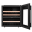 Стеклянная дверь — дополнительный изящный штрих к общему дизайну модели. Специальное покрытие защищает вино от влияния ультрафиолетовых лучей, которые проникают, если шкаф находится в солнечной комнате. Цвет корпуса — черный.