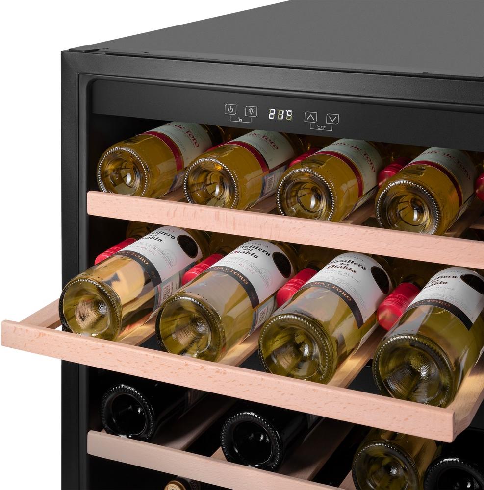 Двухтемпературные предназначены для хранения в разных условиях красного и белого вина. Трехтемпературные — для белого, красного, игристого. Мульти — система хранения из более чем трех зон с разным климатом.