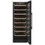 Стеклянная дверь — дополнительный изящный штрих к общему дизайну модели. Специальное покрытие защищает вино от влияния ультрафиолетовых лучей, которые проникают, если шкаф находится в солнечной комнате. Хранение становится еще безопаснее и герметичнее благодаря нескольким слоям стекол. Цвет корпуса — черный. Дверь можно перевесить на другую сторону, поэтому вариантов размещения его в доме становится больше.