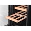 Полки в винных шкафах позволяют размещать бутылки для хранения в горизонтальном положении. Это необходимо, чтобы пробка постоянно смачивалась жидкостью и не пересыхала. Плотно закрытая пробка гарантирует, что внутрь бутылки не проникнет наружный воздух. Кислород, содержащийся в воздухе, может стать причиной ухудшения вкуса вина и даже его скисания. Кроме того, горизонтальное положение позволяет лучше оценить количество осадка. Материал изготовления полок выбирается, исходя из требований, предъявляемых к содержанию коллекции вин. Одним из основных требования является отсутствие или максимальное сокращение вибрации и хорошая фиксация бутылок на месте хранения. Даже если полка выдвигается, бутылки должны оставаться на своем месте. Второе требование исключает применение стеклянных полок, как в обычном холодильнике: на них почти невозможно зафиксировать бутылки.