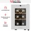 Стеклянная дверь — дополнительный изящный штрих к общему дизайну модели. Специальное покрытие защищает вино от влияния ультрафиолетовых лучей, которые проникают, если шкаф находится в солнечной комнате. Хранение становится еще безопаснее и герметичнее благодаря нескольким слоям стекол. Цвет корпуса — белый.
