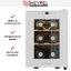 Электронное управление помогает быстро разобраться в том, как функционирует эта модель, и легко настроить все необходимые параметры. На дисплее отображаются данные, которые собирают датчики в камере. Лампочки, расположенные внутри, хорошо подсвечивают бутылки. Всего полок, на которых можно разместить коллекцию, в шкафу 2 шт.