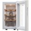 Стеклянная дверь — дополнительный изящный штрих к общему дизайну модели. Специальное покрытие защищает вино от влияния ультрафиолетовых лучей, которые проникают, если шкаф находится в солнечной комнате. Хранение становится еще безопаснее и герметичнее благодаря нескольким слоям стекол. Цвет корпуса — белый.